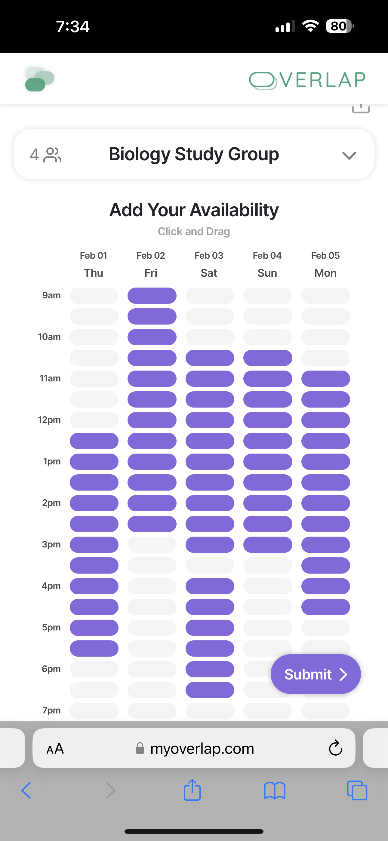MyOverlap revolutionizes this process with an intuitive and user-friendly method of adding availability. Its system is designed to reduce confusion and streamline the scheduling process, a significant improvement over When2Meet's more basic approach.